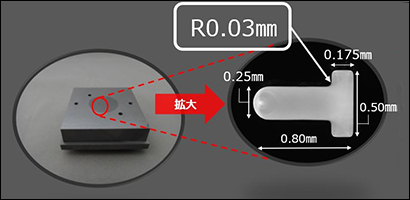 最小孔径:0.03mm,最小清角:0.023mm,加工精度:±0.0005mm,表面粗超度:Ra0.04μm