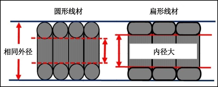 与圆线弹簧相比,在相同外径下扁线弹簧内径大,更能有效的利用空间